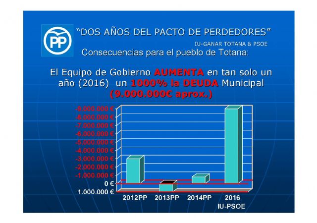 Este Equipo de Gobierno ha intentado manipular los datos para engañar a los vecinos como es el caso del préstamo del BBVA, donde el exalcalde ha contado a los vecinos una mentira tras otra, felicitándose de una rebaja de la clausa de penalización de cierre del préstamo cuando esta clausa no se tenía que aplicar, ya que el préstamo no se ha anulado por lo que ha aumentado el préstamo y no rebajado como ha anunciado a los vecinos mintiendo una vez más, los resultados del estudio económico-financiero en el que han metido datos que no son computables en una auditoria con el fin engordar la deuda y poder tapar sus mentiras de campaña y todo esto ha dado como resultado que el déficit creado en un solo año, 2016, ha alcanzado casi los 9.000.000,00€ que el exalcalde vuelve a maquillar con el fin de esconder su pésima gestión económica.