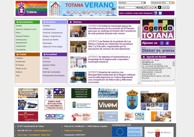 La Junta Local de Gobierno ha adjudicado recientemente a la mercantil “Avatar Internet, SLL” el contrato menor de servicios de mantenimiento y hospedaje de la página web corporativa municipal www.totana.es hasta el próximo 30 de noviembre de este año, por un importe de 600 euros al mes más IVA.