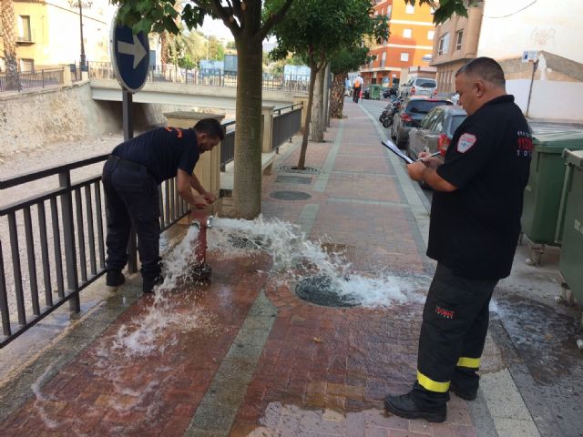Voluntarios de Protección Civil en Totana están realizando durante estos días labores de revisión técnica a los más de 150 hidrantes distribuidos por el casco urbano y el polígono industrial "El Saladar" dentro del programa de mantenimiento del Plan de Revisión de Equipos Contra Incendios que desarrollar esta agrupación local.