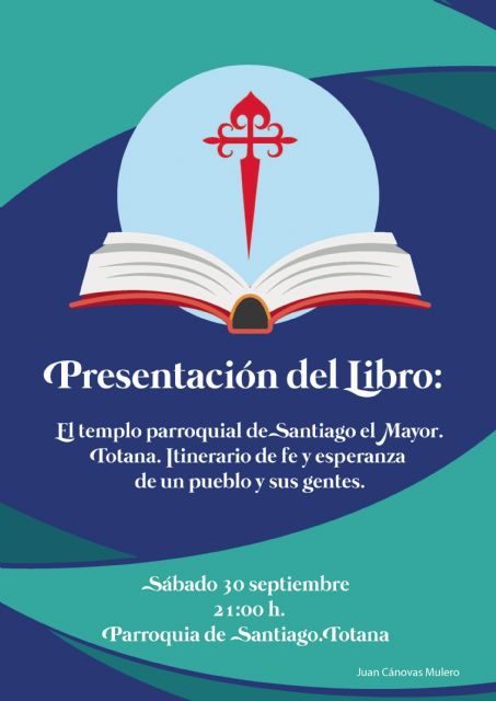 El libro del cronista oficial de la ciudad de Totana, el historiador Juan Cánovas Mulero, presenta este próximo sábado 30 de septiembre, a partir de las 21:00 horas, el libro "El templo parroquial de Santiago El Mayor". Totana, itinerario de fe y esperanza de un pueblo y sus gentes", con el que finaliza el programa de actos organizados con motivo del 450 aniversario de la consagración del templo parroquial, según informan fuentes de la Concejalía de Cultura.