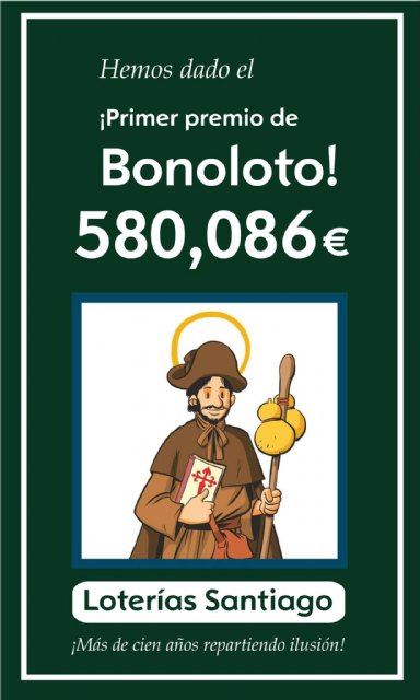 Un acertante de primera categoría de la Bonoloto en Totana gana 580.085,97 euros