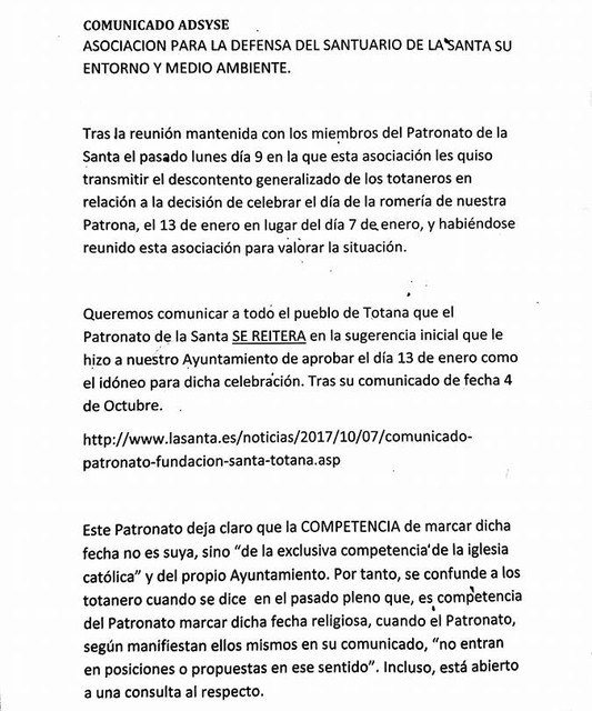 Comunicado de Adsyse referente a la reunión mantenida con el patronato de La Santa