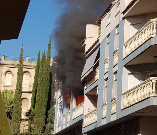 Policía Local y Protección Civil intervienen en un incendio en un piso, que sofocan efectivos de Bomberos del CEIS de la Región de Murcia