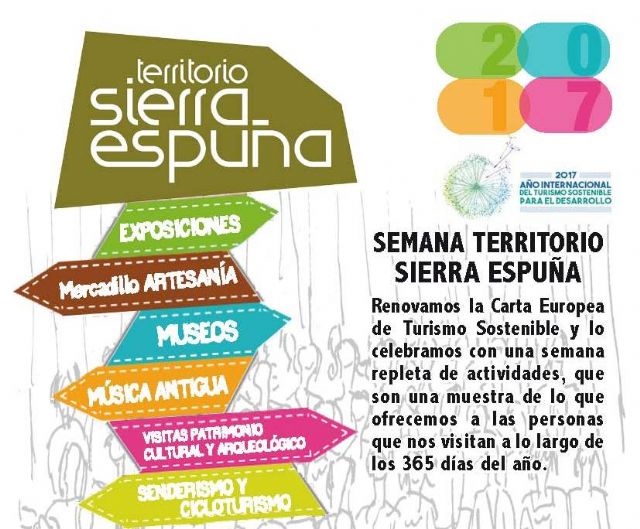La Mancomunidad de Sierra Espuña y todas las demás entidades implicadas en la Carta Europea de Turismo Sostenible (CETS), entre ellas el Ayuntamiento de Totana, están de celebración, por lo que del 11 al 19 de noviembre, se ha organizado la denominada "Semana Territorio Sierra Espuña", con un amplio abanico de actividades para festejar la renovación de la Carta, vigente desde 2012 pero que se renueva cada cinco años.