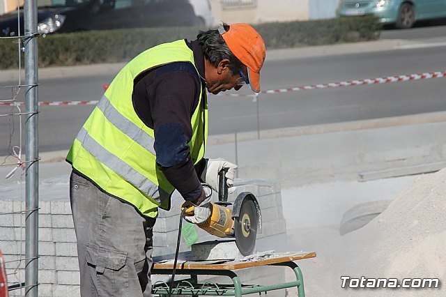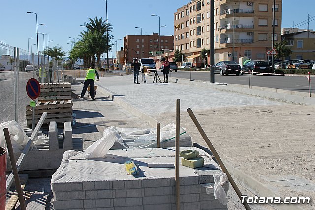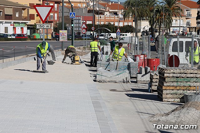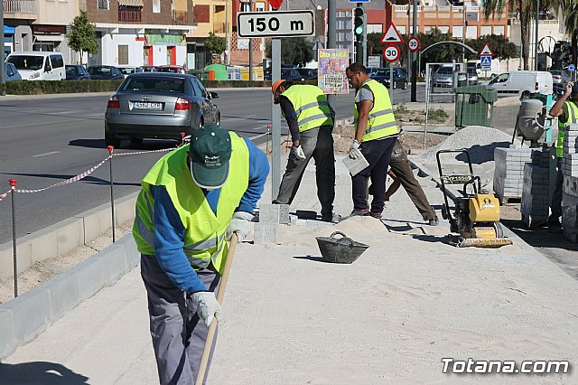 La Concejalía continúa acometiendo las obras de colocación y revestimiento de aceras en un tramo de más de 100 metros en la avenida Juan Carlos I, a la altura del barrio Tirol-Camilleri, con el fin de adecuar la travesía urbana.
