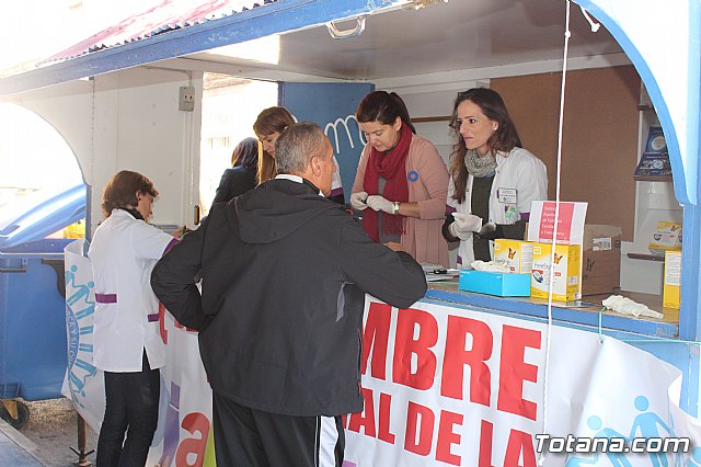 Totana ha conmemorado hoy el Día Mundial de la Diabetes con la instalación de un punto de información móvil en la Glorieta, en el que profesionales farmacéuticas de esta localidad, en colaboración con representantes de la Asociación de Diabéticos de Lorca y su comarca (ADILOR), han dado a conocer esta patología, los hábitos que causan esta enfermedad y modos de salud preventivos de la misma.