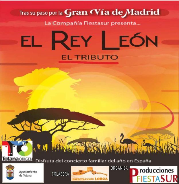 La Concejalía de Festejos del Ayuntamiento de Totana informa que ya se han agotado las entradas para el espectáculo infantil tributo "El Rey León" que tendrá lugar el día 5 de diciembre (20:30 horas) en el Cine Velasco dentro del programa de fiestas patronales de Santa Eulalia.
