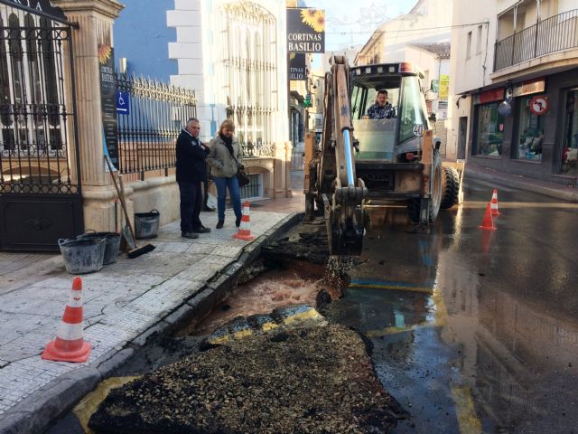 El Servicio Municipal de Aguas ha procedido a primera hora de esta mañana al corte en el suministro del servicio de agua potable en el casco urbano debido a una importante rotura registrada en la tubería de la red general a la altura de la calle Puente de esta localidad, frente a la conocida "Casa Azul".