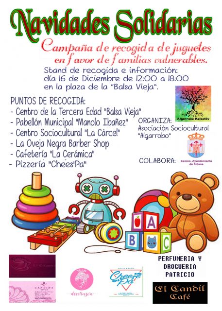 De este modo, desde Algarrobo Kolectiv hemos organizado una recogida de juguetes solidaria para que esa parte humana que aún reside en nuestra idea de Navidad llegue cargada de alegría a la casa de todas las familias de nuestro pueblo.