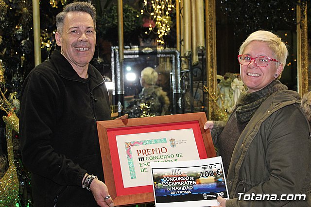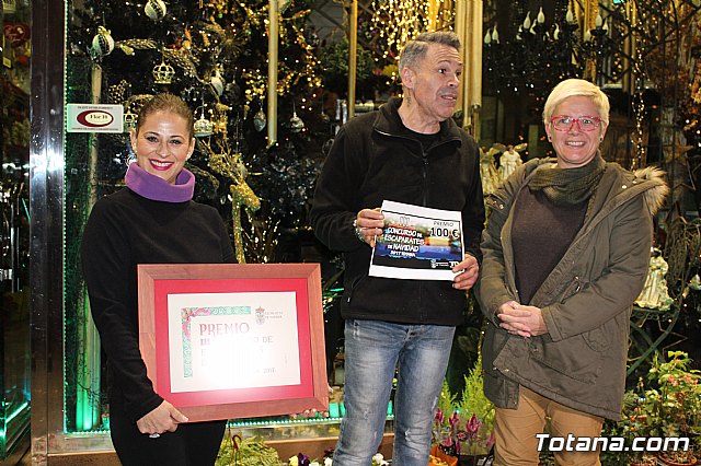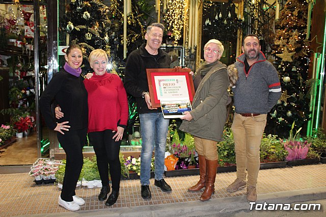 La concejal de Cultura del Ayuntamiento de Totana, Eulalia Moreno, entregó anoche el premio al ganador del III Concurso de Escaparates de Navidad, que este año ha correspondido a la "Floristería Pierrot" de esta localidad, y está dotado con un único premio de 100 euros.