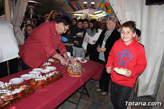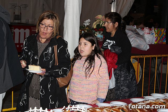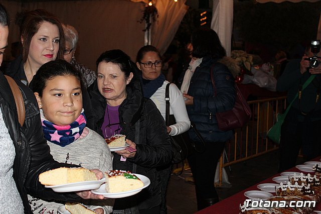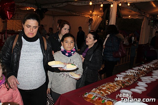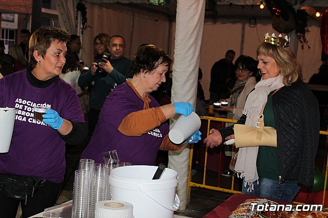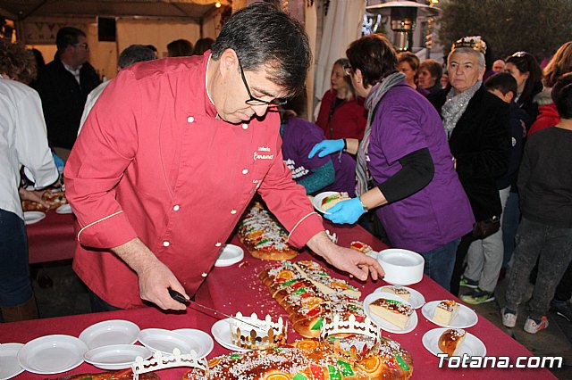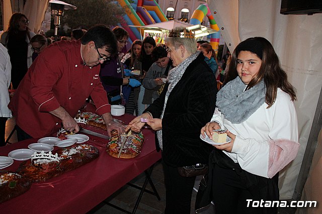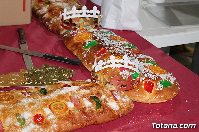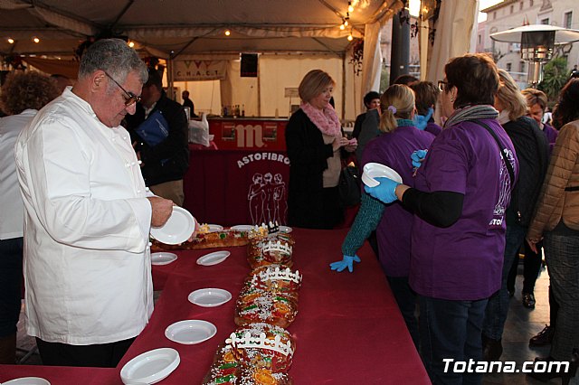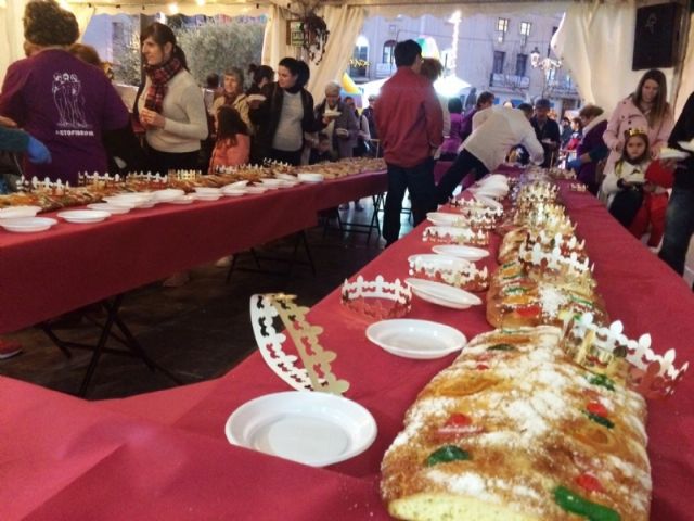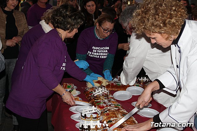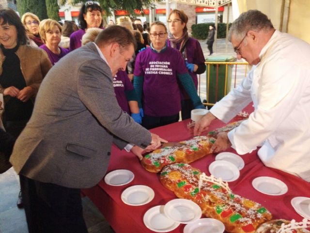 La Asociación de Pasteleros Artesanos de Totana (ASPARTO) y la Asociación de Comercios Hosteleros del Centro de Totana (CHACT) celebraron ayer la actividad del “Roscón de Reyes”, una actividad que se retoma después de que el pasado año no se pudiera celebrar, y que se ha organizado en la plaza de la Balsa Vieja a beneficio de la Asociación de Fibromialgia y Fatiga Crónica de Totana (ASTOFIBROM).