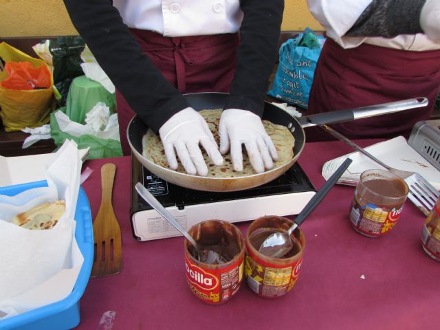 "El alumnado del Aula Ocupacional nos ha sorprendido de nuevo, esta mañana, y en el recreo, nos han preparado y vendido, crêpes salados y dulces que han hecho las delicias de toda la comunidad educativa. Esta iniciativa comenzó el pasado viernes día 17 de noviembre, y tras el éxito de la anterior visita, nuestros alumnos del Aula Ocupacional de la especialidad de Cocina, han repetido la experiencia en dos ocasiones.