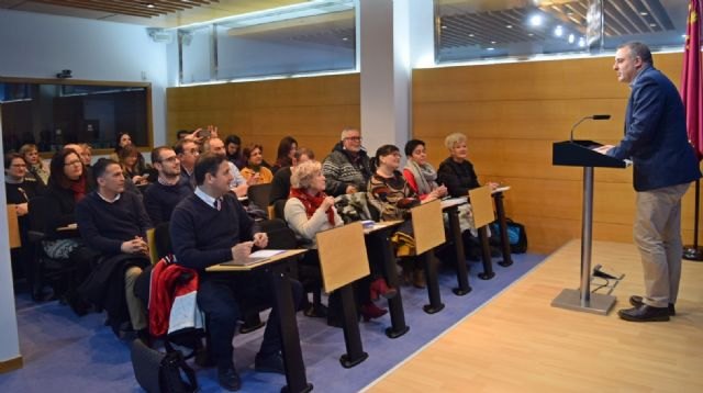 El director general de Comercio, Consumo y Simplificación Administrativa, Francisco Abril,mantuvo un encuentro con los concejales de Comercio de los municipios de la Región para informales sobre las ayudas en materia de comercio programadas para este año 2018, y a la que asistió la concejal del ramo totanera, Antonia Camacho Crespo.