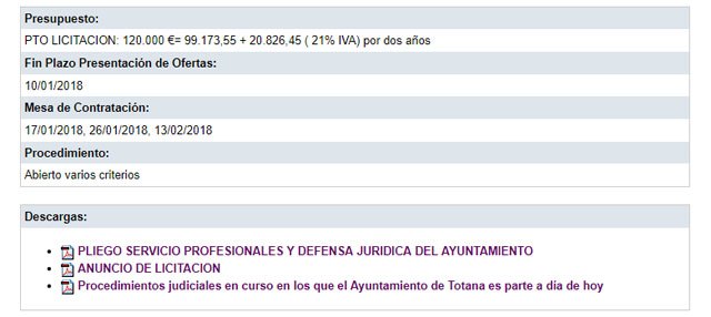 Procedimientos judiciales en curso en los que el Ayuntamiento de Totana es parte a día de hoy