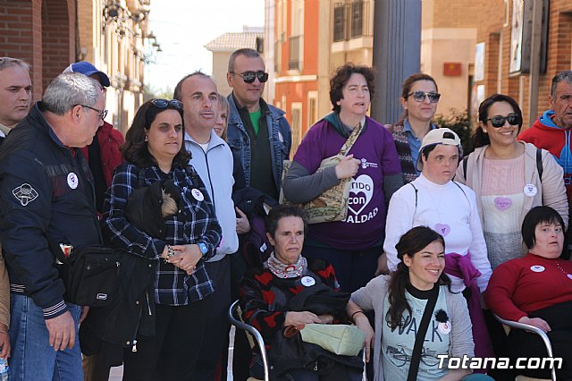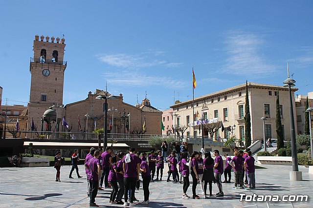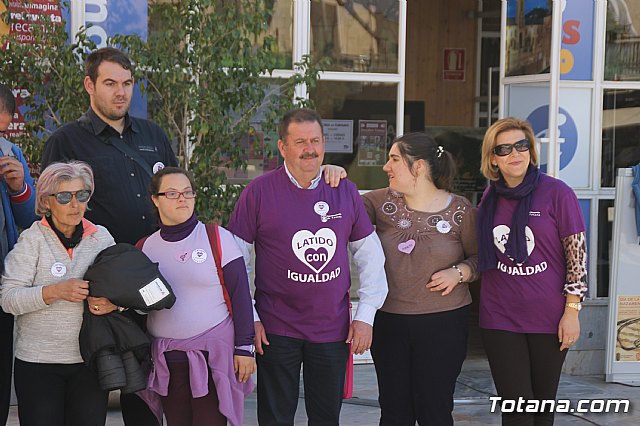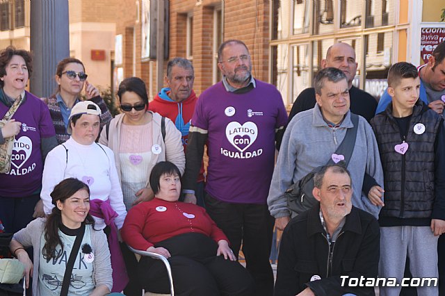 Más de un centenar de alumnos y alumnas de Educación Secundaria de diferentes centro de enseñanza y usuarios de los centros de día de discapacidad de Totana formaron hoy un corazón humano en la plaza de la Balsa Vieja de esta ciudad para escenificar sus "latidos" por la Igualdad con motivo del programa de actos conmemorativos por el Día Internacional de la Mujer.