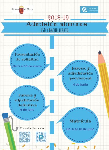 Otros criterios de puntuación significativos: alumno con discapacidad (4 puntos); y padres o hermanos con discapacidad (0,5 hasta un total de 2 puntos).Toda la información del proceso, junto a la documentación correspondiente, será publicada en la sección 'Admisión de alumnos' del portal Educarm.