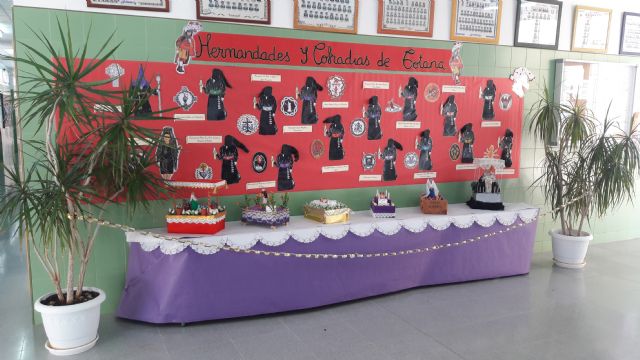 Las familias han participado activamente, acercando al colegio pequeños tronos realizados en madera y plastilina , que representan imágenes y símbolos que procesionan en Totana.