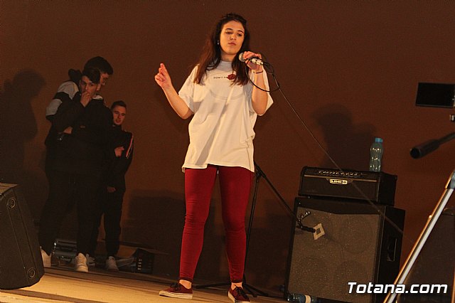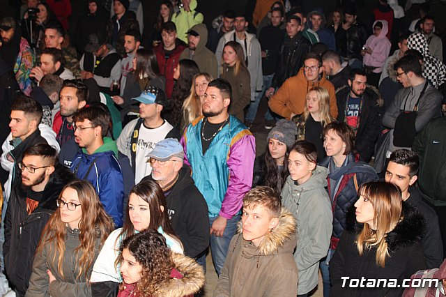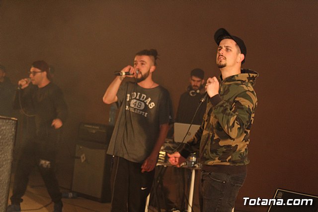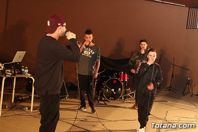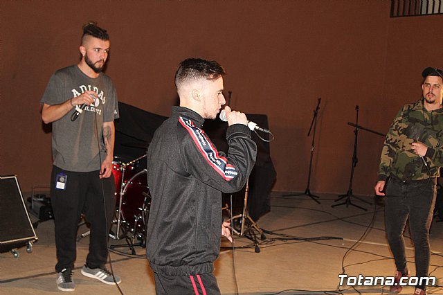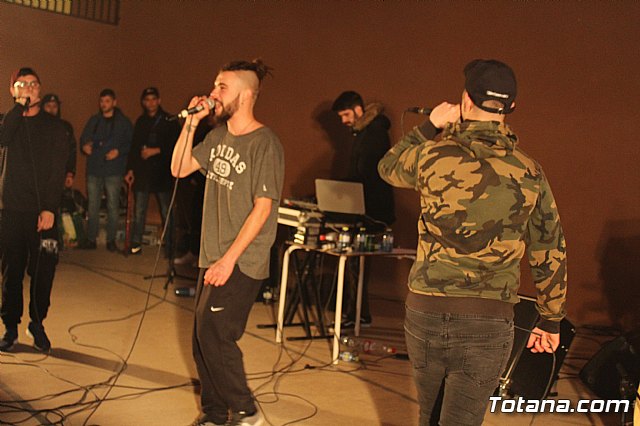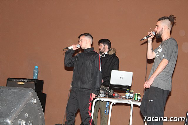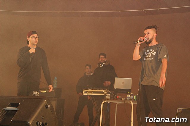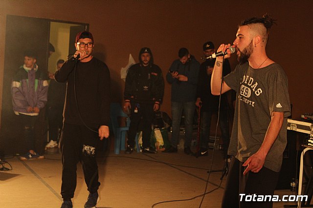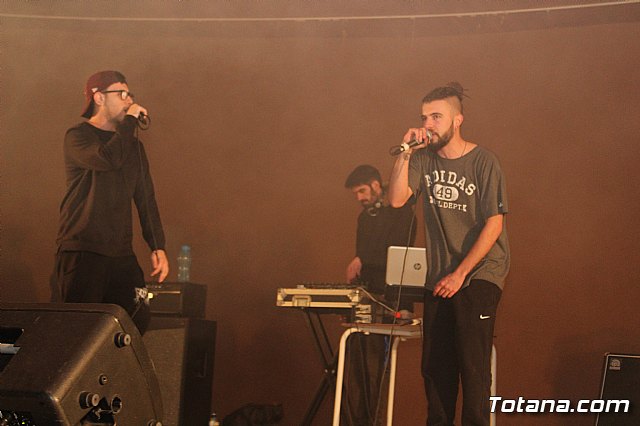 En el festival participaron un total de nueve artistas o grupos de Totana y fuera que deleitaron a los jóvenes asistentes con sus canciones de rap y reggae, en lo que se conoce popularmente como "batallas de gallos".
