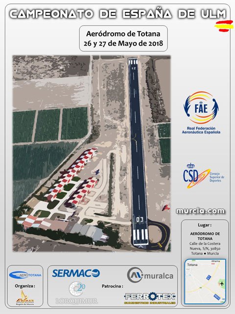 Los próximos días 26 y 27 de mayo, la Real Federación Aeronáutica Española junto con la Federación Aeronáutica Regional y el Aeroclub Totana, celebrará por primera vez en la Región de Murcia, el Campeonato de España de ulm (aviación ultraligera).