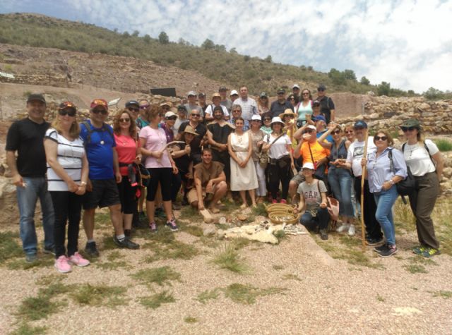 Medio centenar de graduados sociales y economistas han participado en una visita teatralizada al yacimiento argárico de La Bastida en Totana. Los profesionales de ambos colegios han utilizado instrumentos similares a los de hace 4000 años para moler trigo o hacer piezas de barro y cera.