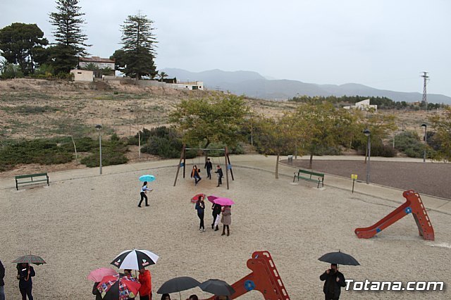 El alcalde de Totana, Andrés García, elevó una moción al pleno ordinario del citado mes proponiendo denominar al parque-jardín situado  en la puerta de la sede social de la Hermandad “Jardín Santa María Cleofé y Coronación de Espinas”.