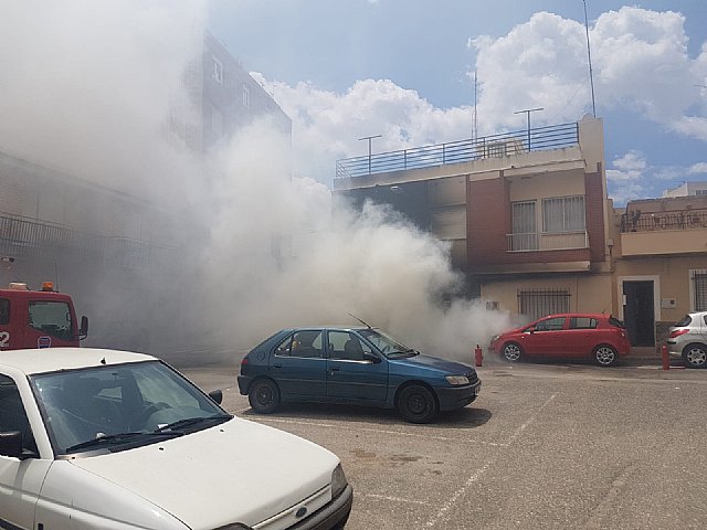 Bomberos y Sanitarios han acudido a sofocar un incendio de un vehículo afectando a una vivienda en Totana