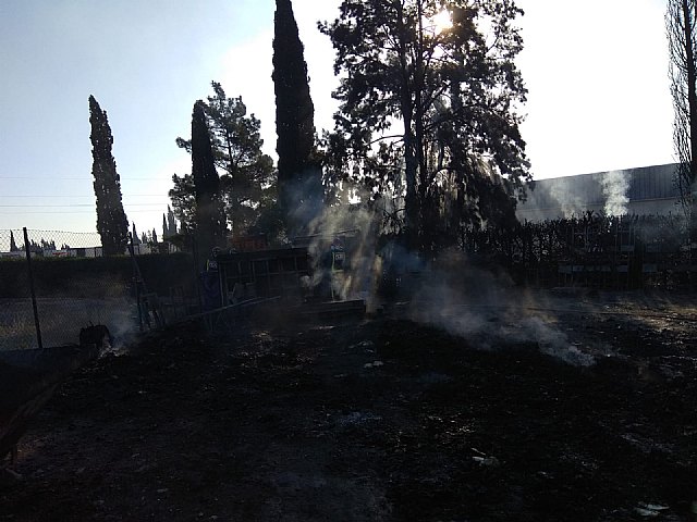 8:02 horas.- Bomberos del Consorcio de Extinción de Incendios y Salvamento de la Región de Murcia han sofocado esta mañana el incendio declarado en el exterior de una nave dedicada al almacenaje de fruta en Totana.