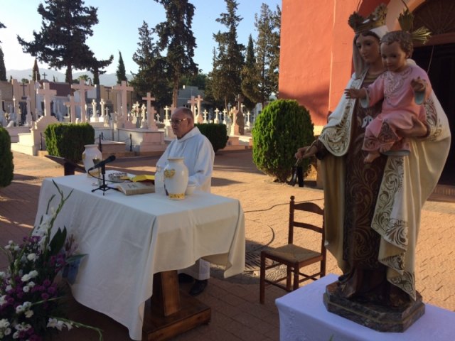 Autoridades municipales asistieron ayer, festividad de la Virgen del Carmen, a la tradicional misa de la patrona del Cementerio Municipal “Nuestra Señora del Carmen”, cuyo acto fue oficiado por el sacerdote Pedro Hernández Cañizares y contó con numeroso público.