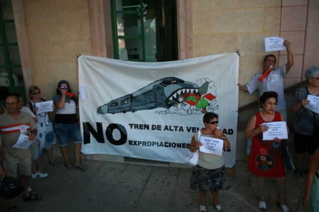 El encuentro se enmarcó dentro de las reuniones institucionales que está manteniendo en los municipios afectados por el trazado del AVE, donde fue recibido por algunos vecinos y manifestantes, a las puertas del Consistorio totanero, miembros de la plataforma AVE Totana Fuerza Ciudadana.