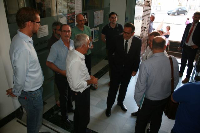 Después, el delegado del Gobierno, quien estuvo acompañado en todo momento por el alcalde Andrés García, se reunió, en el salón de plenos, con los portavoces de todos los partidos políticos con representación en el Ayuntamiento de Totana, así como con miembros de la plataforma contra la línea de alta tensión y AVE Totana Fuerza Ciudadana y técnicos de Fomento en la Delegación del Gobierno y Adif.