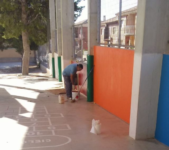 La Concejalía de Obras e Infraestructuras está acometiendo durante estas semanas numerosas actuaciones de mejora y acondicionamiento en los colegios de Totana coincidiendo con las vacaciones escolares de verano y de cara a la puesta a punto con motivo del comienzo del curso escolar 2018/2019, según informa su titular, Víctor Balsas.