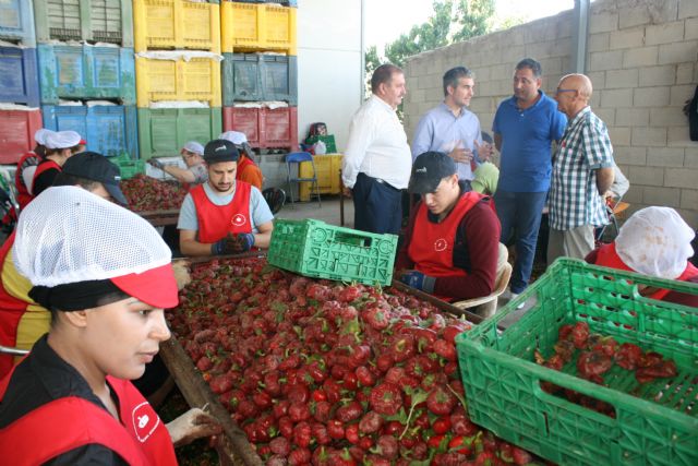 El consejero de Agricultura y Agua, Miguel Ángel del Amor, el alcalde, Andrés García, el director general de Innovación, Producciones y Mercados Agroalimentarios, Fulgencio Pérez, han visitado las explotaciones e infraestructuras de procesado de este producto de gran calidad.