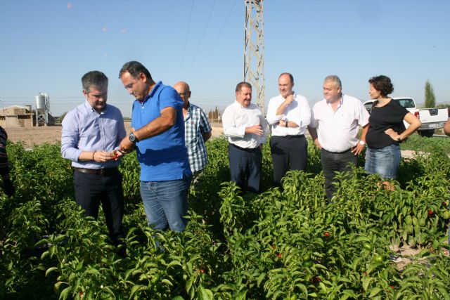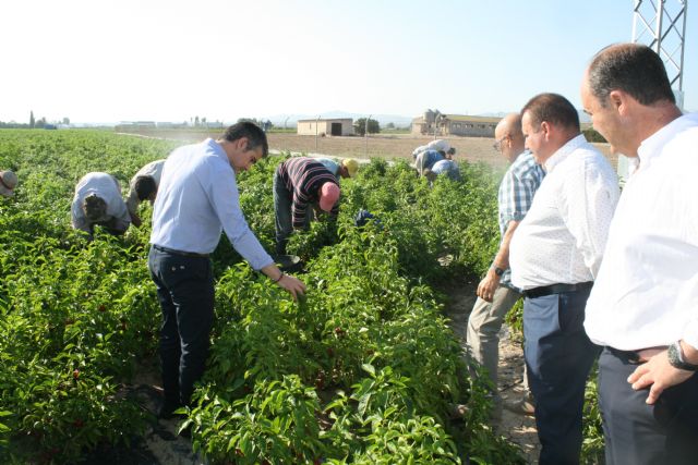 El consejero de Agua, Agricultura, Ganadería y Pesca, Miguel Ángel del Amor, visitó dicha finca de pimiento de bola en Totana, perteneciente a la Asociación de Productores de Pimiento Para Pimentón del Valle del Guadalentín.