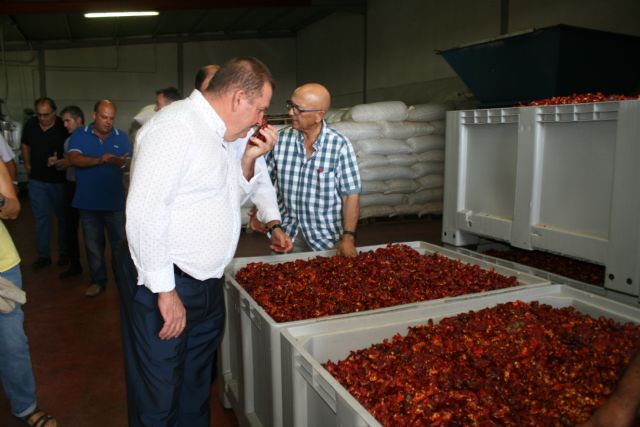 Autoridades regionales y locales visitaron hoy las explotaciones e instalaciones de procesado y comercialización de la Asociación de Productores de Pimiento para Pimentón "Valle del Guadalentín" de Totana.