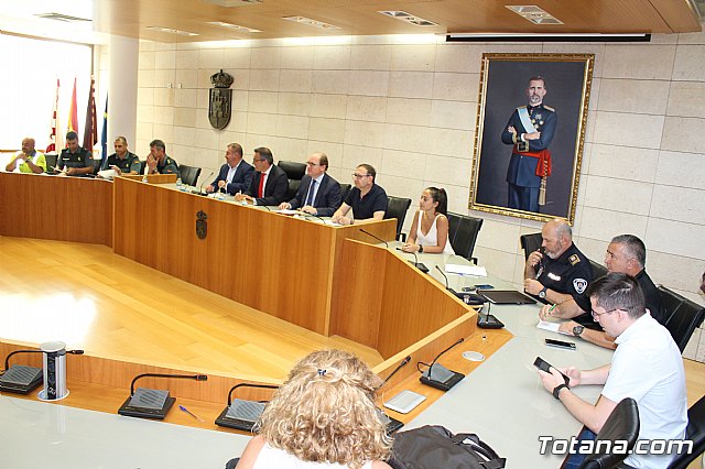 La Junta Local de Seguridad Ciudadana contó con la presencia del Delegado del Gobierno Diego Conesa, el director general de Emergencias del Gobierno Regional, José Ramón Carrasco, el alcalde de Totana, Andrés García, y concejales de la corporación municipal