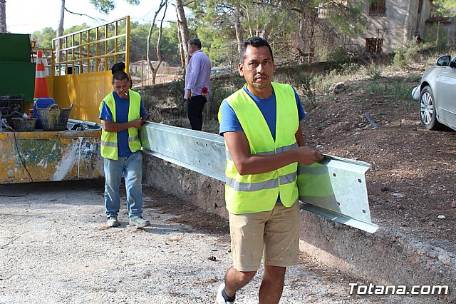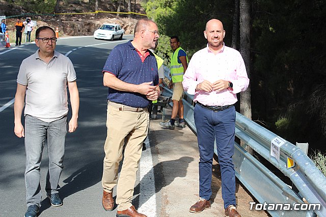 El director general de Carreteras, Francisco José González Manzanera, y autoridades locales han visitado las obras las obras de demolición del muro existente y la reposición de barrera de seguridad por accidentes en la carretera RM-502, que comunica Totana y Aledo, a la altura del punto del punto kilométrico 4 de dicha carretera.