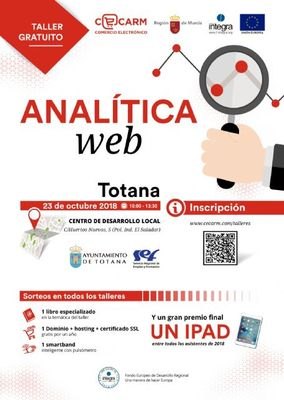 El proyecto CECARM, que gestiona la Fundación Integra, y la Concejalía de Desarrollo Económico del Ayuntamiento de Totana ponen en marcha el taller gratuito sobre "Analítica Web", que tendrá lugar el próximo martes 23 de octubre, en el Centro de Desarrollo Local ubicado en el polígono industrial "El Saladar", a partir de las 10:00 horas.