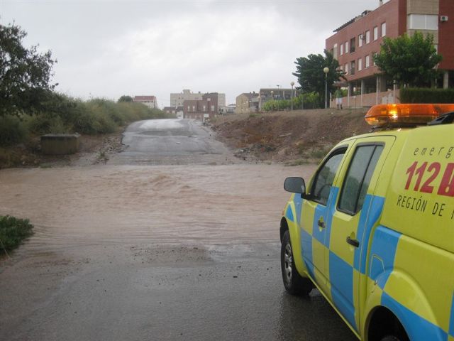 - Carretera del Raiguero (RM-D22–Corral Rubio): zona inundable y arrastres al llegar al puente de la autovía y en su cruce con el río Guadalentín.