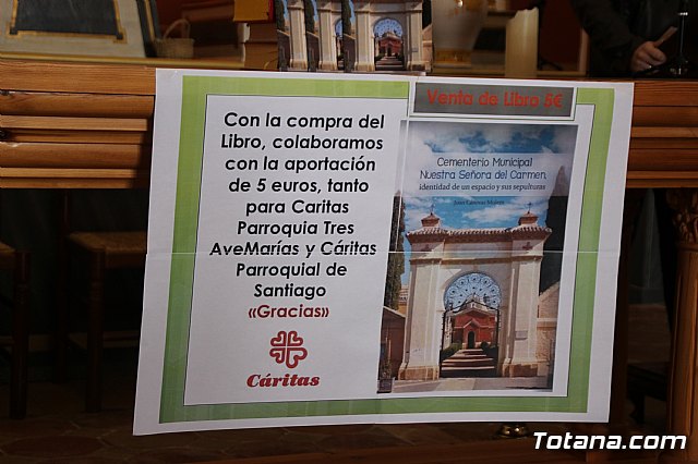 El cronista de la ciudad, el profesor e investigador Juan Cánovas Mulero, presentó ayer el Cuadernillo sobre el Cementerio Municipal “Nuestra Señora del Carmen”, que ha contado con la colaboración del Ayuntamiento de Totana, cuyo acto se celebró en la Capilla del camposanto a beneficio de las dos Cáritas en Totana.