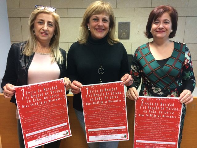 La concejal de Comercio, Antonia Camacho, y las responsables de la Asociación de Comerciantes de la avenida de Lorca, Antonia Victoria y Choni Rodríguez, han presentado esta nueva edición de la Feria que sirve de prolegómeno ya tradicional al comienzo de las fiestas de Navidad en esta localidad.