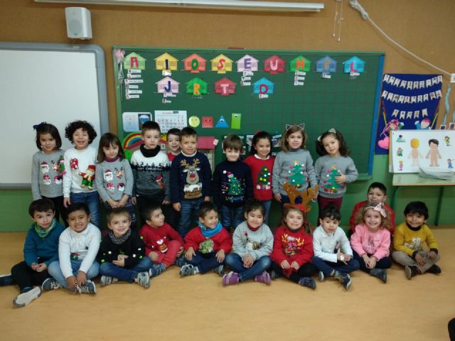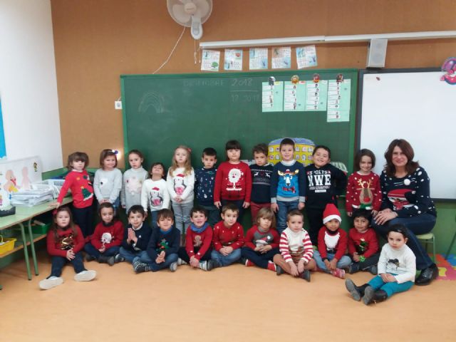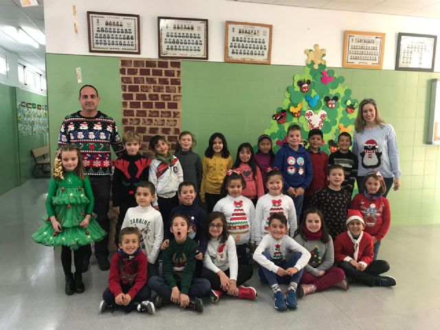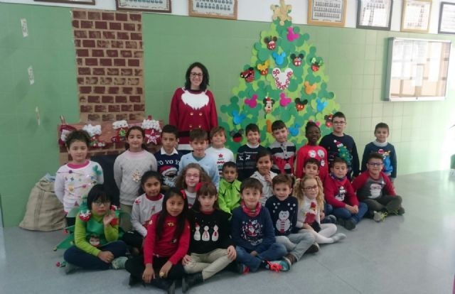 Así, jerséis con renos, copos, muñecos de nieve, árboles de navidad…. han inundado el centro iniciando de este modo el espíritu navideño en el CEIP La Cruz de Totana.