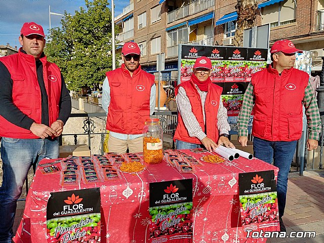 La Asociación de Productores de Pimentón del Valle del Guadalentín están repartiendo hoy 2000 muestras de 50 grs. de pimentón totalmente gratis entre los asistentes al mercadillo semanal de Totana.