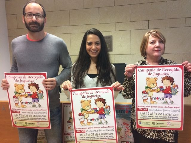 La concejal del ramo, Isabel María Molino, el coordinador deportivo del centro "MOVE", José Luis Hernández, y la representante de Cáritas de las Tres Avemarías, Lucía Vivancos, presentaron públicamente esta iniciativa, con la que se pretende recoger juguetes nuevos o en buen estado que se puedan repartir a niños y niñas de familias necesitadas durante las próximas fiestas navideñas.