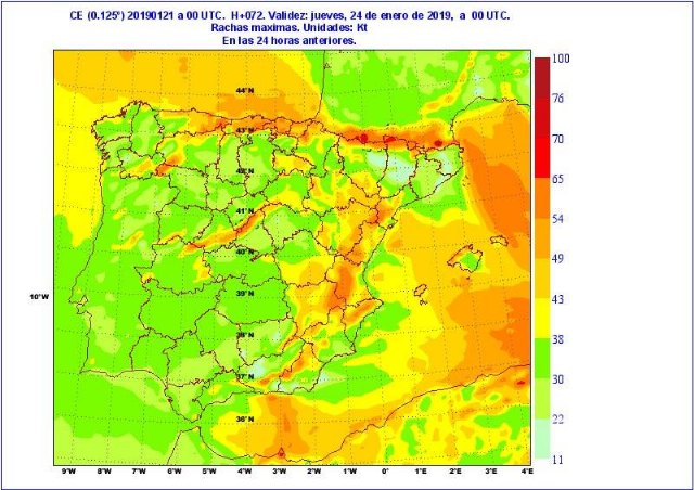 Por lo tanto, en la Región de Murcia notaremos fuerte viento entre miércoles y jueves, así como fuerte oleaje en el mar. Las rachas de viento serán fuertes en gran parte de la Región, o incluso muy fuertes en zonas altas y cerca del litoral. Se superarán los 50km/h en toda la Región y en muchos puntos los 70km/h.