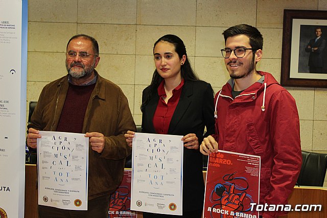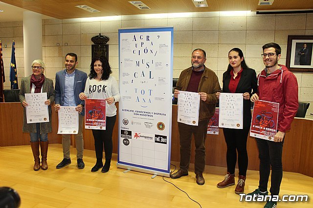 El primer teniente de alcalde, Juan José Cánovas, la concejal de Cultura, Eulalia Moreno, el director de la Banda de la Agrupación Musical, José Ángel Palazón, la vicepresidenta de la Junta Directiva, Blasi Montes, y los músicos Fran Cánovas y María Corbalán presentaron el elenco de actividades.