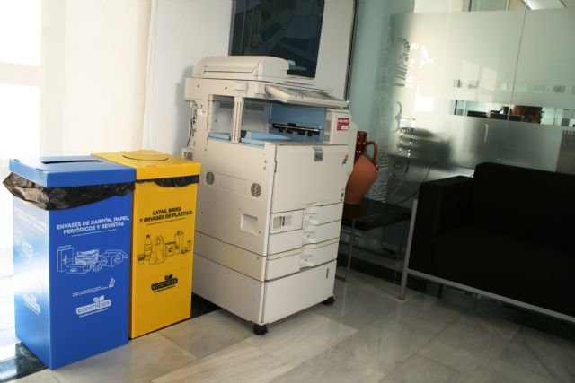 Para ello, se han instalado, en diferentes espacios y edificios municipales, contenedores amarillos y azules, en los cuales empleados públicos y usuarios que los visiten pueden depositar los residuos generados.
