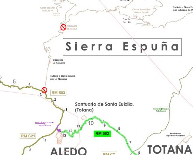 Permanecerá cortado durante un mes uno de los accesos a Sierra Espuña, desde la zona de Las Alquerías, por obras de mejora en la carretera
