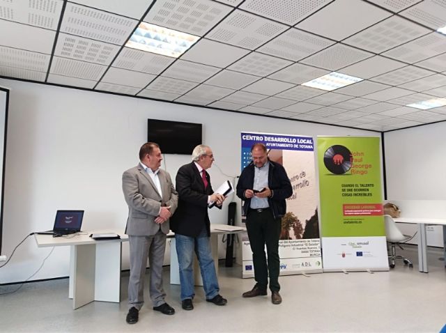 En el acto han estado presentes el alcalde de Totana, Andrés García, y el primer teniente de alcalde y concejal de Desarrollo Económico, Juan José Cánovas, así como técnicos del Centro de Desarrollo Local y empresarios y emprendedores del municipio.