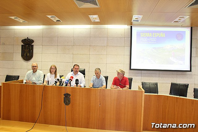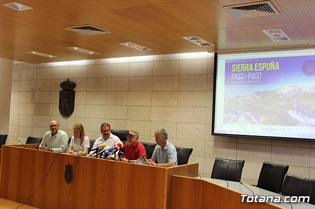 La publicación "Sierra Espuña, paso a paso" se ha presentado recientemente en el salón de plenos del Ayuntamiento de Totana con el fin de promover el conocimiento del Parque Regional y el fomento sostenible del turismo, así como tratar de evitar el despoblamiento de los núcleos rurales que circundan éste mediante el impulso socioeconómico que aporta la actividad turística.