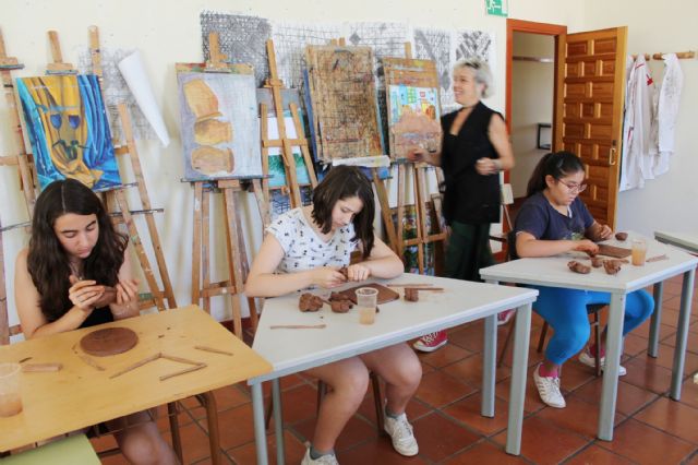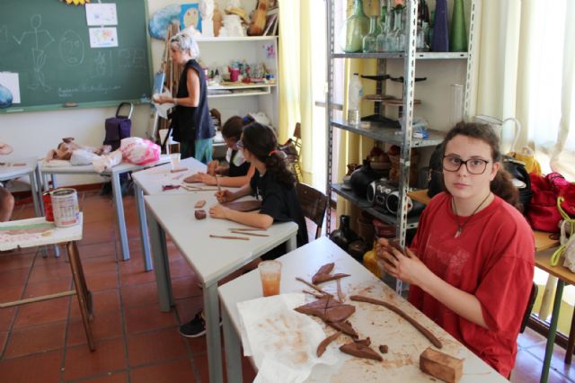 Una decena de jóvenes han participado en el Taller de Artes Plásticas, Pintura y Escultura, organizado por la Asociación Cultural "Caja de Luz" dentro del programa "Totana Verano" que promueve la Concejalía de Juventud y se ha celebrado durante el mes de julio en el Centro Sociocultural "La Cárcel".